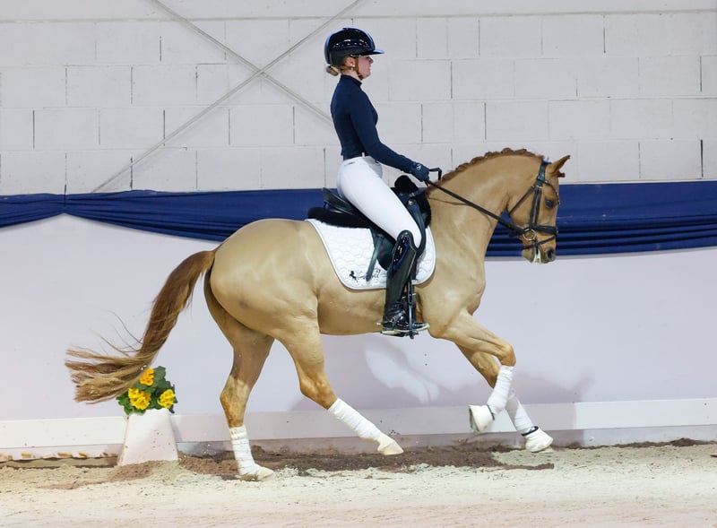 In unserer Kollektion stehen streng selektierte Reitponys f�r alle Anspr�che: Ausbildungs-, Zucht- und Kinderponys Hier gelangen Sie zur Gesamtkollektion: https://ponyforum.auction Dieser sechsjährige Wallach ist ein elegantes und typvolles Dressurnachwuchspony im allerfeinsten Ponylook. Vinajo hat einen leichtfüßigen und lockeren Bewegungsablauf und ein sehr harmonisches Seitenbild. Er ist auf sicherem A-Level ausgebildet, trägt sich schon schön und nimmt die reiterlichen Hilfen hervorragend an. Im Training beherrscht er auch schon spielerisch erste Lektionen der Dressurpferdeprüfungen der Klasse L! Er ist auch auch im Umgang ein ganz liebes Pony, das gerne betüddelt wird und sich verwöhnen lässt. Er ist gut erzogen und zu Mensch und Tier freundlich. Vinajo hat schon erste Turnierprüfungen bestritten und zeigte sich hier wirklich unkompliziert.