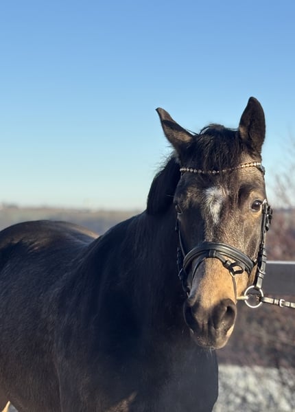 For sale: German riding pony – ideal for dressage! A beautiful bay gelding born in 2019 is available. Standing at 155 cm, he is perfect for ambitious riders seeking a reliable and talented horse. This pony is versatile in dressage and impresses with his elegant appearance and willingness to learn. He is friendly to handle, well-trained, and already shows great potential for advanced dressage lessons. If interested and for further information, please feel free to contact me. This special riding pony is looking for a new, caring rider who wants to develop his skills.