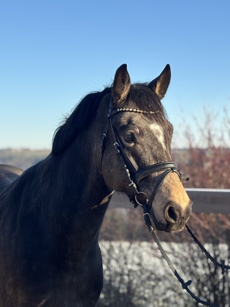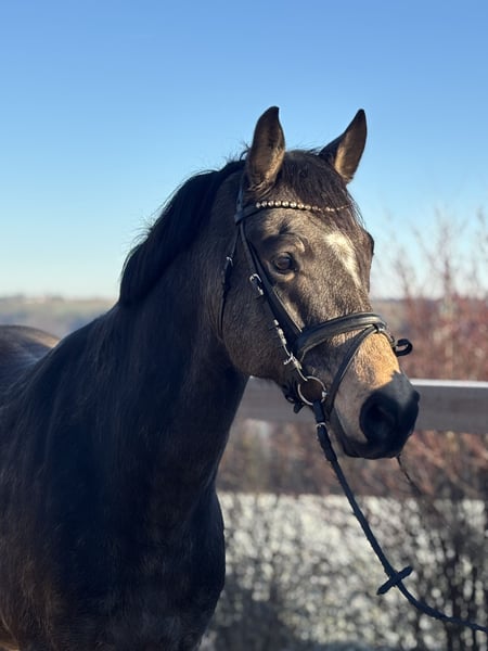 For sale: German riding pony – ideal for dressage! A beautiful bay gelding born in 2019 is available. Standing at 155 cm, he is perfect for ambitious riders seeking a reliable and talented horse. This pony is versatile in dressage and impresses with his elegant appearance and willingness to learn. He is friendly to handle, well-trained, and already shows great potential for advanced dressage lessons. If interested and for further information, please feel free to contact me. This special riding pony is looking for a new, caring rider who wants to develop his skills.