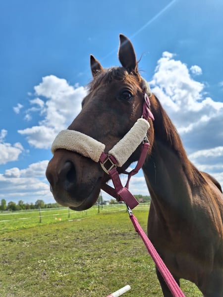 Schweren Herzens suche ich für meinen 8-jährigen Deutschen Reitpony Wallach (1,54 m) ein neues Zuhause, in dem er weiter gefördert und geliebt wird. Charmeur- Der Name ist Programm! Er ist ein absolut menschenbezogenes Pony, der die Nähe zu „seinem“ Menschen genießt und mit viel Motivation und Freude bei der Arbeit ist. Ob Dressur, Bodenarbeit, Equikinetic oder Dualaktivierung – er möchte gefallen und bringt eine tolle Arbeitsbereitschaft mit. Sein Charakter ist etwas ganz Besonderes: kopfklar, neugierig, gelassen und dabei immer freundlich. Auch im Umgang zeigt er sich unkompliziert – brav beim Schmied, kennt Hunde und geht problemlos auf den Anhänger, auch alleine! Im Gelände ist er sowohl alleine als auch in der Gruppe unterwegs und bleibt auch in neuen Situationen gut händelbar. Er reißt sich nicht los, sondern orientiert sich am Menschen. Trotz seiner lieben Art ist er kein Anfängerpony, da er aufgrund seines Alters und Ausbildungsstandes noch weiter gefördert werden möchte. Er ist „unverbraucht“ und bringt viel Potenzial für die Zukunft mit. Er lebt aktuell im Offenstall in einer gemischten Herde und ist dort rangniedrig. Dies ist kein Notverkauf – er wird nur in allerbeste, passende Hände abgegeben. Vorkontrolle sowie Vorkaufsrecht sind für mich selbstverständlich. Vorab kannst du auch erst eine Reitbeteiligung mit Kaufoption bei uns machen, um zu schauen ob es wirklich passt Er kann auch am jetzigen Stall stehen bleiben Ins neue Zuhause kann er auch gebracht werden Ich möchte nicht das er ein Wanderpokal wird,das hat er nicht verdient! Wenn du auf der Suche nach einem ehrlichen Partner bist, mit dem du gemeinsam wachsen kannst, könnte er genau der Richtige für dich sein. ❤️ Er hat einen leichten Bockhuf, dadurch hat er keine Einschränkung, braucht keine Eisen und läuft Barhuf Der Preis ist verhandelbar, Zubehör bringt er mit