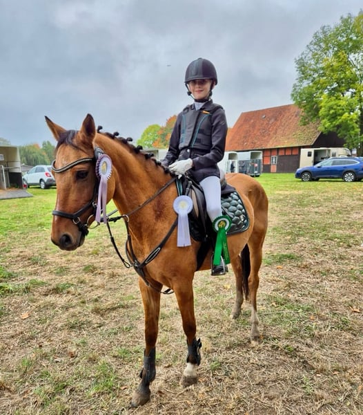 Golden Diamond ist ein 9-jähriger, 145 cm großer Buckskin-Wallach, der durch sein ausgeglichenes Wesen und seine Zuverlässigkeit überzeugt. Er ist kinderlieb, unerschrocken und stets ehrlich – ein echtes Verlasspony und wahrer Goldschatz. Im Dressurviereck ist er mehrfach platziert und konnte auch in kleinen Springprüfungen unter einem 11-jährigen Mädchen Erfolge erzielen. Er zeigt sich dabei immer motiviert, lernfreudig und gelassen – ein idealer Partner für ambitionierte Kinder und Jugendliche. Golden Diamond ist brav im Gelände, allein wie in der Gruppe, und absolut unkompliziert im täglichen Umgang. Er kennt jede gängige Haltungsform (Box, Offenstall, Paddock) und zeigt sich sowohl in der Herde als auch in der Box sehr sozial und verträglich. Er ist regelmäßig geimpft, entwurmt, und eine aktuelle Ankaufsuntersuchung inklusive Röntgenbildern liegt vor. Ein echter Allrounder, der sofort Freude bereitet – ob im Turniersport, beim Reiten in der Halle oder bei entspannten Ausritten. Ein Termin zum Probereiten kann natürlich gerne jederzeit vereinbart werden. Melden sie sich dafür direkt bei 01629803866 per Telefon oder WhatsApp, da wir im ehorses Chat nicht aktiv sind.