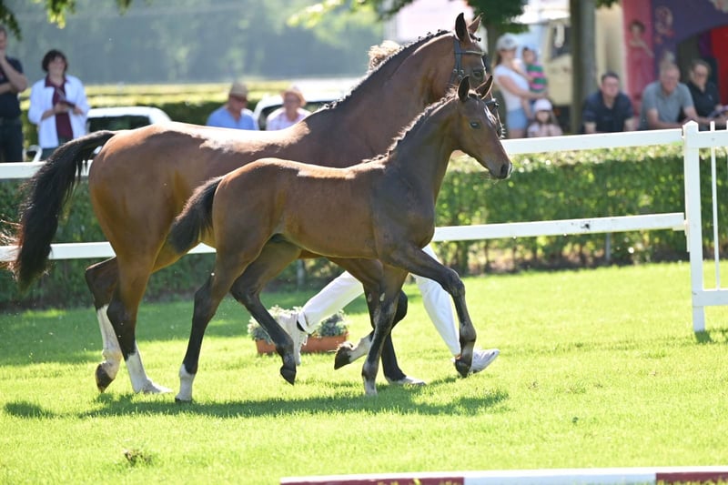 From a renowned breeding farm, bay colt, born on April 15, 2025. Sire: Contendro II - Ramiro's Son II - Esteban xx - Aldatus - Cartusch - Graphit - Valentino xx, Holstein Stamm 884. Reserve Champion at the foal show PZV Calvörde, 4th place in the Brillantring DSP Foal Championship for show jumpers in Neustadt (Dosse). 4 generations of mares in the FN performance mare book, numerous performance horses from this lineage, high proportion of Vornholzer blood. https://www.horsetelex.de/horses/pedigree/2671298/con-ramiro If you are interested or have further questions, we look forward to your message. Don’t miss this opportunity! 0171/7545864.