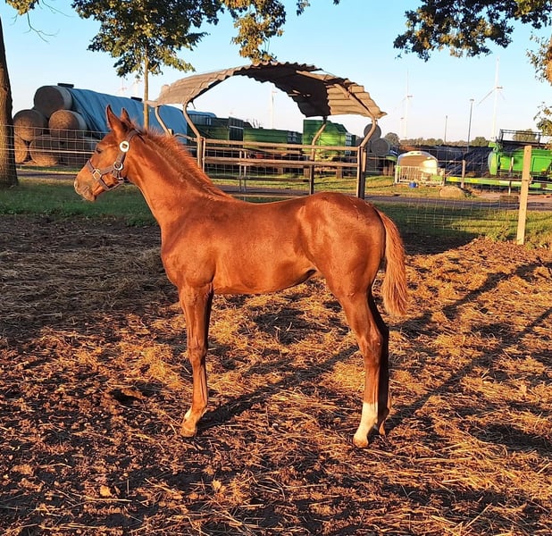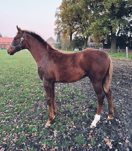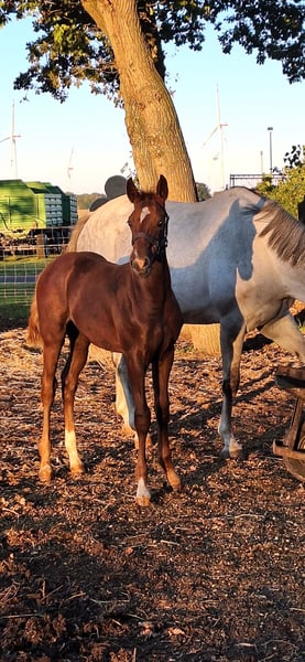 Openda was born on May 29, 2025, and is a typy, jump-oriented colt by Oganero P out of Bonaparte N AA. (Oganero P was the spring champion at his licensing in Neustadt/Dosse and impresses with his exceptional jumping ability and calm demeanor). He has three good basic gaits, is well-versed in the foal's ABCs, and is shoe-friendly. Available for sale from the end of November.