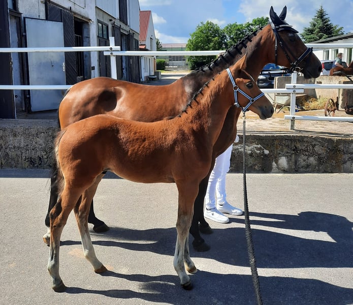 Questo puledro di prima qualità, proveniente dal primo raccolto di Stakkato Cornet, è in vendita. Nato il 04.04.2024, è già ben sviluppato. È facile da condurre al pascolo e da riprendere. La sua madre, St.Pr.St Leona Lewis di Ludwig von Bayern, porta il titolo di fattrice premium DSP. Tutti i suoi puledri sono puledri da premio. Anche le sue due figlie sono cavalle da premio statale. Le Casira B ha avuto successo nelle competizioni di salto ostacoli di classe elementare e ha vinto il test di rendimento sul campo per i 3 anni. Lia Casira B è stata campionessa di riserva al Campionato sassone-turingio delle giumente a Wolfersdorf. Con un punteggio di 9,5 nel salto in libertà. Ha già avuto un puledro all'asta all'asta DSP Elite di Darmstadt-Kranichstein. Tutti i cavalli della famiglia della cavalla sono ben educati e facili da gestire. Non ci sono problemi nemmeno durante il rodaggio. Per ulteriori domande sul puledro, si prega di chiamare. Lo svezzamento è previsto per la fine di settembre e potrebbe trasferirsi. È possibile sottoscrivere un'assicurazione sul vivo fino allo svezzamento.
