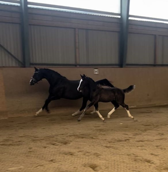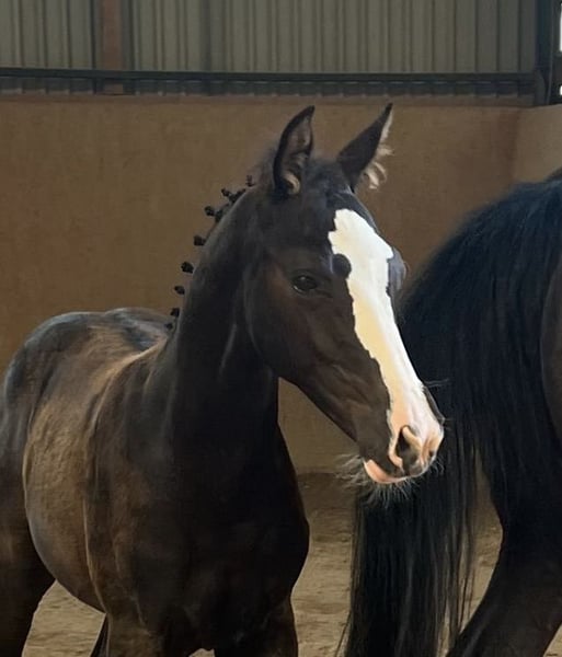 This beautifully presented colt from 2024 not only impresses with his pedigree, but also with his good-natured character. Both parent lines can look back on great successes in show jumping, which gives him promising potential. From the very first hour, he shows himself to be extremely people-oriented, which will make him a very special partner in the future. He impresses with his excellent basic gaits and flawless conformation, which underlines his quality. With his potential and his pedigree, he would also be very interesting as a stallion prospect. The colt was weaned at the end of 2024 and is now being kept in an age-appropriate environment together with other yearlings in a loose stable, where he has the opportunity to develop optimally. Further rearing on site is possible by arrangement. This colt offers an excellent basis for further development and is a promising option for both ambitious breeders and riders looking for a talented young horse. For sale below value due to downsizing. - A unique opportunity to acquire a promising young show jumper! ------ All our advertised horses for sale are regularly vaccinated and wormed from birth. For further details and questions about the horses for sale please contact us by telephone, messages will only be answered to a limited extent.