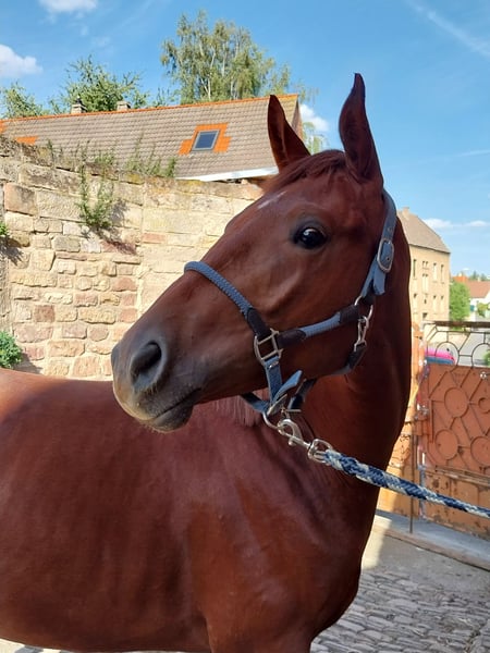 Vendemos para la primavera de 2026 un potro de tres años, hijo del semental Trakehner Freiherr von Stein (Landgestüt Moritzburg). Sus movimientos son enérgicos, rítmicos y caracterizados por una naturalidad en el equilibrio, lo que promete un futuro prometedor en la disciplina de doma clásica. Con su carácter muy amistoso y su alta disposición para aprender, es adecuado tanto para jinetes experimentados como para principiantes ambiciosos. Posee una base correcta, con una activa extremidad trasera. Es muy tipificado, de cabeza clara y amigable, y ha gozado siempre de buena salud. Como potro, fue galardonado con la prima de potro. Ya ha adquirido las primeras experiencias en el trato con las personas y se muestra tranquilo y cooperativo en todas las situaciones. Por petición, puede ser castrado. Si busca un compañero talentoso y cercano, tanto para ocio como para deporte, estaremos encantados de recibir su contacto y de que le conozca en persona.