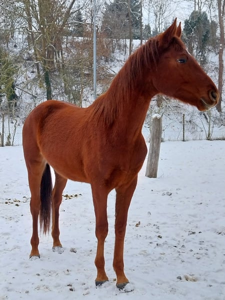 Nous proposons à la vente, au printemps 2026, un poulain mâle de trois ans, descendant du sang du étalon Trakehner Freiherr von Stein (Élevage de Moritzburg). Il est élevé en compagnie d’un autre étalon, qui partira début mars pour sa nouvelle maison. À partir de ce moment, Fürst Frederik pourra également rejoindre son nouveau foyer. Ses mouvements sont fluides, précis au rythme et caractérisés par une harmonie naturelle – un gage de succès futur en dressage. Avec son tempérament très amical et sa grande capacité d’apprentissage, il convient aussi bien à des cavaliers expérimentés qu’à des débutants ambitieux. Il possède une base solide, avec un postérieur actif, est très typé, vif d’esprit et sociable, et a toujours été en bonne santé. En tant que foal, il a été récompensé par une prime de naissance. Il a déjà acquis ses premières expériences en interaction avec l’humain et se montre calme et coopératif en toutes circonstances. Sur demande, il peut également être castré. Si vous recherchez un partenaire talentueux et attaché à l’homme pour la randonnée ou le sport, nous serions ravis de recevoir votre contact et de faire votre connaissance lors d’une rencontre.