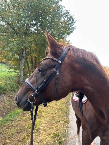 Dressurnachwuchs mit Spitzen-Abstammung – Baron x Dancier | Elitefohlen 2021 Rasse: Deutsches Sportpferd (DSP) Geboren: 08.04.2021 Geschlecht: Hengst Farbe: Fuchs Größe: ca. 1,55 m (noch im Wachstum) 🩶 Abstammung Dieser vielversprechende junge DSP-Hengst stammt aus einer der bewährtesten Dressurlinien Deutschlands: Vater: Baron (v. Benicio – Belissimo M – Sir Donnerhall) – bekannt für Rittigkeit, Typ und Bewegungsstärke. Mutter: Dornröschen (v. Dancier – De Niro – Maurice) – aus dem erfolgreichen hannoverschen Stamm der Golfdiele, der zahlreiche Grand-Prix-Pferde hervorgebracht hat. Elitefohlen DSP 2021. Diese Blutkombination vereint sportliche Leistungsfähigkeit mit höchster Rittigkeitsvererbung. 💫 Bewegung & Charakter Drei sehr gute Grundgangarten mit viel Ausdruck, Takt und natürlicher Balance Besonders hervorzuheben: raumgreifender, schwungvoller Trab mit aktivem Hinterbein Longiert, kennt Reitergewicht (nicht angeritten), regelmäßig gearbeitet. Sozialer, ausgeglichener Charakter – steht neben Stute und Wallach problemlos in der Box, ebenso verträglich auf der Koppel. 📈 Perspektive Ideal für ambitionierte Reiter, Ausbilder oder Züchter mit Fokus auf Dressur. Durch sein korrektes Fundament, den elastischen Bewegungsablauf und sein angenehmes Temperament ein Partner mit Zukunft. Wird unter Wert verkauft, da er koppt – ohne gesundheitliche Beeinträchtigung.