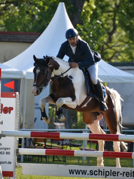 Con Colore ist ein Sohn des international erfolgreichen Con Spirito R der unter anderem auch in Nationenpreisen für die Schweiz erfolgreich am Start war. Con Spirito's Nachkommen sind bereits im internationalen Sport angekommen , so können wir auch bei Con Colore auf eine erfolgreiche Zukunft hoffen denn die Mutterseite ist über weitere S erfolgreiche Vatertiere bestens abgesichert !! Sie können hier mit einem Schecken züchten ohne auf begehrte Springlienien zu verzichten. Er ist AES gekört und kann somit Zangersheide Papiere bekommen und andere Ausländische Verbände auf Anfrage. Con Colore ist in Springprüfungen bis 110cm platziert. Röntgenbilder vorhanden !