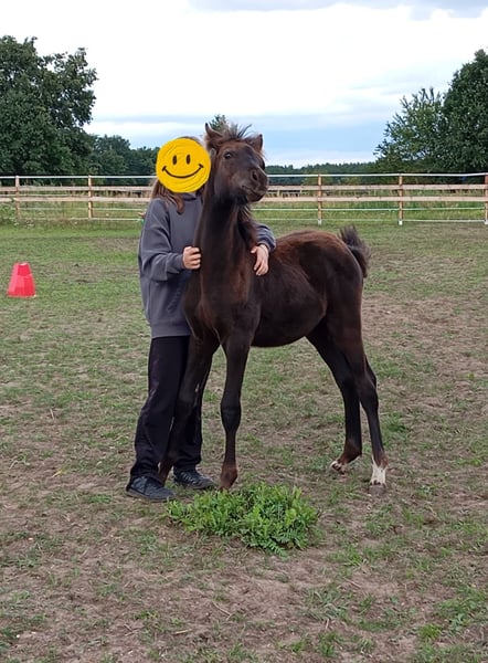 We want to find a new home for our lovely colt (only to experienced horse people). He is very people-oriented and knows the basics of being a foal. (Mother: Welsh mix, Father: offspring of Belantis II). Therefore, he is expected to reach a height of 1.55-1.60 m.