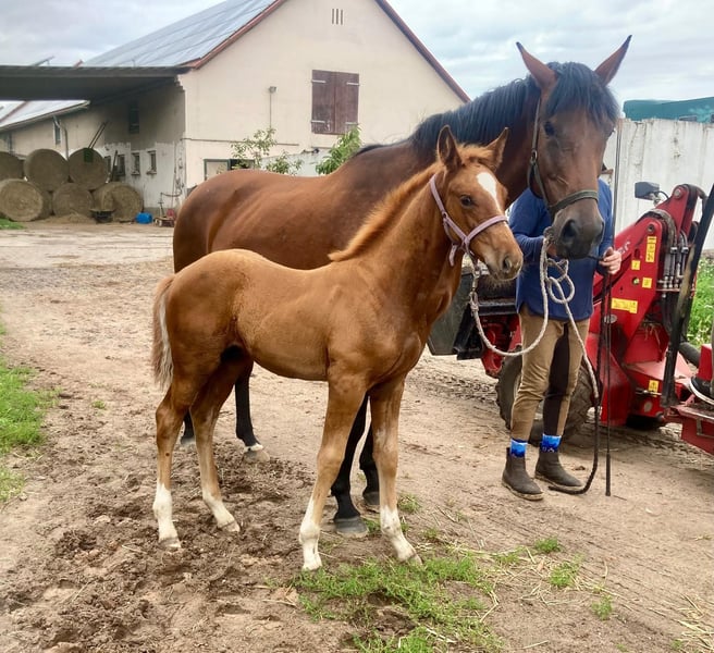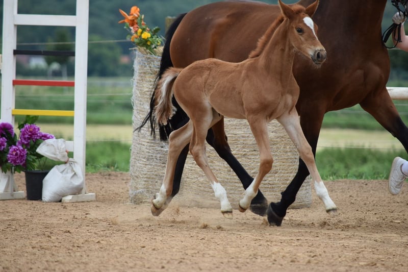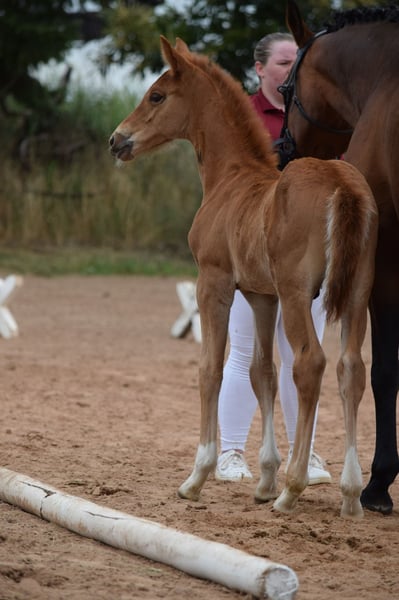 Ein Hengstfohlen mit guten GGA. Er ist schön groß und gut entwickelt. Seine Mutter,ein gutes Reitpferd vom Holsteiner Halbbluthengst Pasco. Der Vater ein Hengst der hochplatziert ist in S Dressuren. Das Fohlen bekommt Papiere von unsem Zuchtverband. Es ist ein Deutsches Sportpferd. Videos sind vorhanden und können geschickt werden.