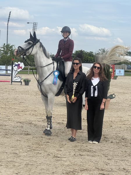 This stunning 9-year-old mare impresses in the show jumping arena with her exceptional overview, agility, and ambition. She has plenty of "go" when needed, yet remains consistently pleasant to ride and very easy to control. In the current season, she has demonstrated her talent with a 14-year-old rider: 🏆 National Cup Winner 2025 🥇 Winner at CSI1* in Samorin 🏅 Numerous additional wins and placings in show jumping classes this season The mare jumps with heart, technique, and great talent. Thanks to her quick reactions and agility, she has already secured many jump-offs. This also makes her an ideal partner for amateurs and young riders. Off the course, she is a real sweetheart – gentle, uncomplicated, and free of vices. Whether grooming, loading, or at the blacksmith: always well-behaved and people-oriented.
