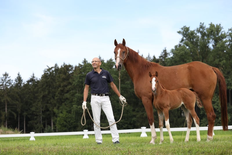 Vi föder upp dressyrhästar - med vårt hästvänliga uppfödningssystem skapar vi de perfekta förutsättningarna för friska och framför allt huvudlösa hästar. Alla våra avelsston är vana vid att föla i en stor flock. Det innebär att fölen från den allra första timmen i livet är en del av en flock som alltid är i storleksordningen 20-30 hästar. Du kan köpa dressyrfödda föl från oss och lämna dem här för uppfödning. Du kan också när som helst köpa unga växande hästar från åringar till 4-åriga råa hästar. Du kan också hitta de bästa avelsstona här. Våra ridhästar till salu står alltid i träningsstall som vi har valt ut på olika platser. Fråga helt enkelt. Vi förväntar oss FOHLEN 2024 från BORDEAUX, DONKEY BOY, EXTREME U.S., IRONMAN BLACK, KINGSTON, NEGRO ,VA BENE. Avelsston som köps från oss kan fortsätta att födas upp och hanteras av oss här. Vi tillverkar också MASSIVA TRÄPANELER för modern öppen stallhållning. För både fyrkantiga och runda balar. Till salu och även för leasing. Vänligen se våra andra annonser på Ehorses. Om du är intresserad, vänligen kontakta oss direkt per telefon: 0172 - 839 66 50 - Rainer Lechl.