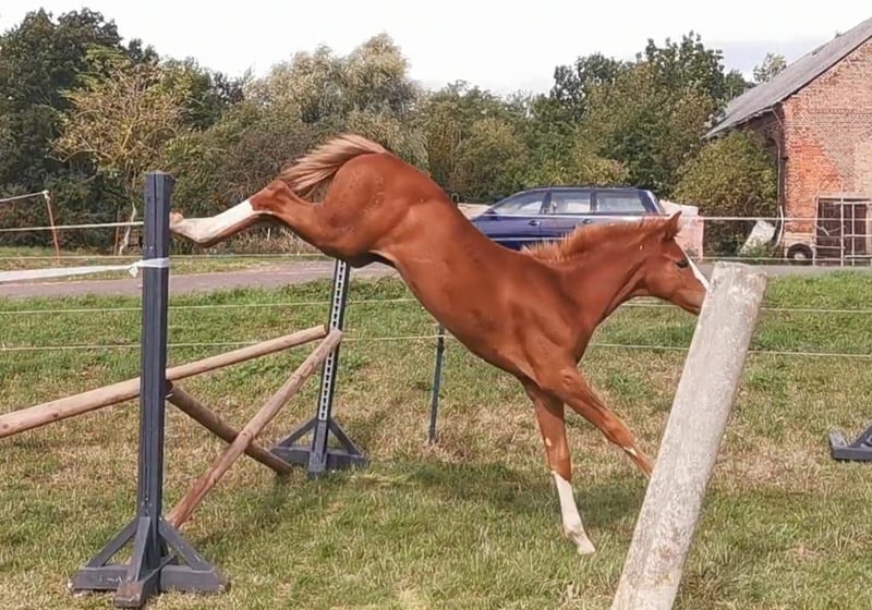 Due to lack of space, I am selling my nearly 2-year-old mare with great potential into caring hands. Caramia is raised in a small herd with young horses and broodmares. She is regularly handled by the blacksmith and is very friendly. She is sired by Glasgow van't Merelsnest and comes from a dam line featuring Balou du Rouet × Camax L × Cornet Obolensky.