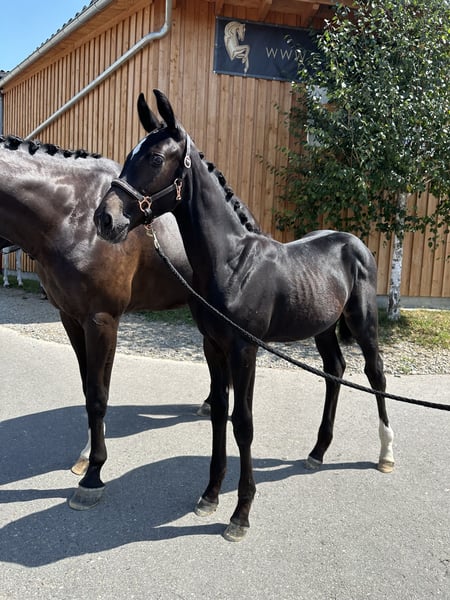 Zum Verkauf steht eine äußerst interessante 2-jährige Nachwuchsstute mit hervorragender Abstammung und viel Potenzial für den Springsport. Abstammung: Vater: Con Spirit DSP Muttervater: Lexicon Weitere Leistungsgenetik über Calido I Die Stute wurde bereits als Silberfohlen prämiert, was ihre überdurchschnittliche Qualität und ihr Exterieur unterstreicht. Sie überzeugt durch ihr modernes, sportliches Erscheinungsbild: sehr groß gewachsen, langbeinig und mit idealen Voraussetzungen für eine erfolgreiche Zukunft im Parcours. Auch im Umgang zeigt sie sich vorbildlich – sie ist brav, halfterführig und verfügt über ein starkes, ausgeglichenes Nervenkostüm. Damit bringt sie nicht nur sportlich, sondern auch charakterlich beste Voraussetzungen für Ausbildung und Turniersport mit. Bei weiterer Förderung ist sie eine hochinteressante Perspektive für ambitionierte Reiter oder Züchter.