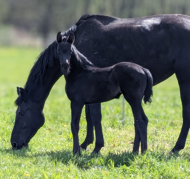 De la Perle is a very smart black filly with 3 very good gaits. She moves very well through the body, is alert and very willing to learn. She also knows how to convince with her correct foundation and an absolutely beautiful face. A promising young talent for the big arena!