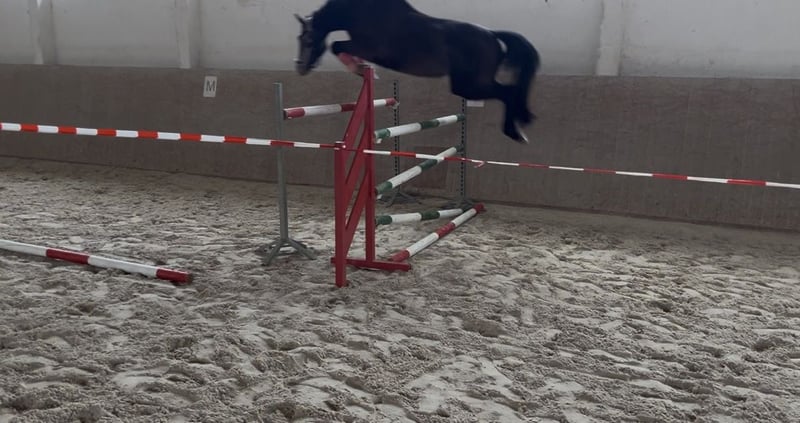 3-year-old mare by Vingino – well-behaved, talented, and versatile For sale is a 3-year-old, exceptionally well-behaved mare by Vingino out of a Conlander x Quintender dam. She currently measures approximately 156 cm (15.2 hh), but is still significantly overbuilt behind, so it is expected that she will grow quite a bit more. Her dam is highly successful in sport and stands at 172 cm (16.2 hh), which indicates that quality and talent have been passed on. The mare has recently been backed and has proven to be very uncomplicated and obedient during training. Under saddle, she has not yet put a foot wrong and impresses with her lightness and rideability. She shows promising talent for jumping but also demonstrates very beautiful movements in dressage, making her suitable for a versatile future career. Thanks to her pleasant temperament and easy handling, I can easily imagine her later as a youth or amateur riding horse. A recent X-ray examination shows no findings. Please feel free to contact me if interested – additional information and videos can be provided.