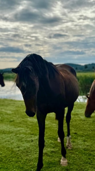 **For Sale: German Sport Horse** For sale is a talented and promising mare from the year 2022. **Features:** - Breed: German Sport Horse - Gender: Mare - Year of Birth: 2022 - Color: Bay - Height: 155 cm This young mare shows great potential in show jumping and impresses with her athletic expression and eagerness to move. She is well-trained, has a friendly character, and is suitable for both leisure and competition riding. If you are interested or need further information, please feel free to contact me. Viewings and test rides are possible by arrangement. We look forward to your inquiry!