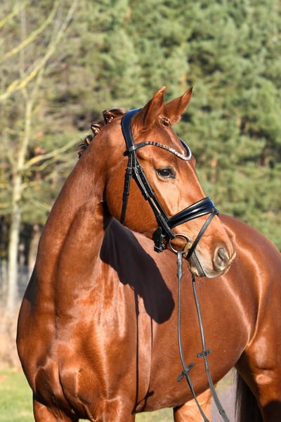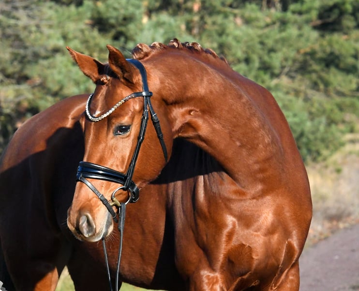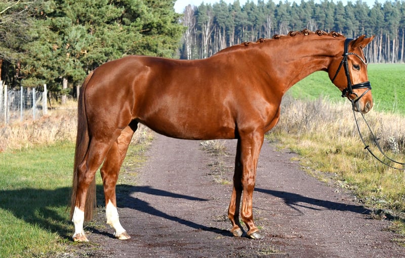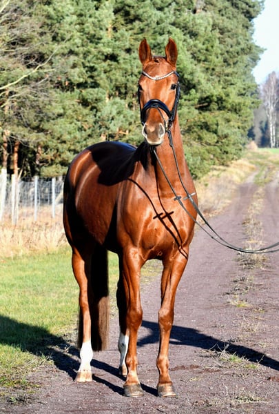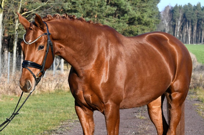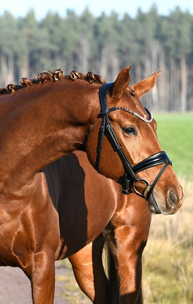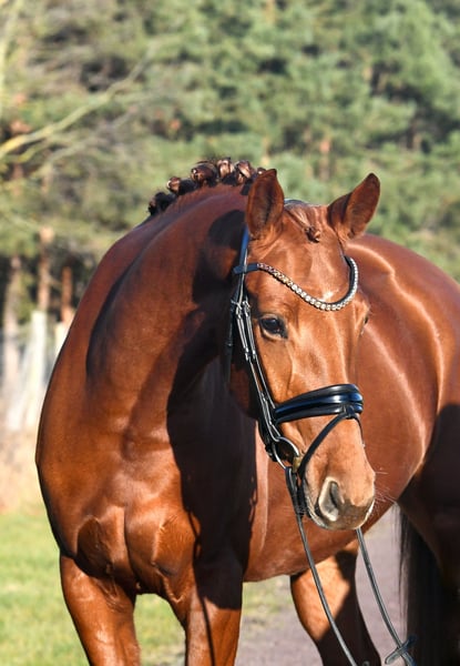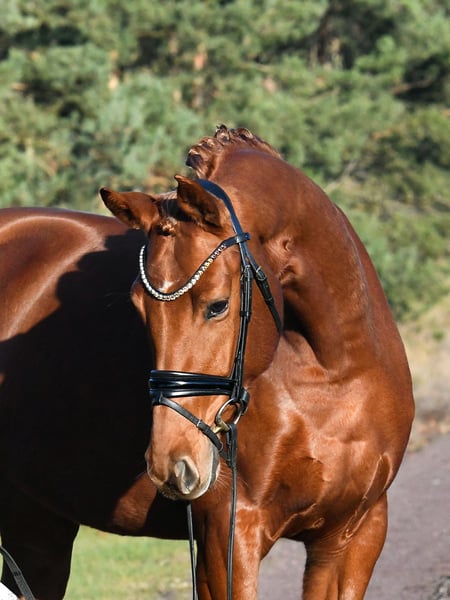 What a wonderful mare! Bred directly by the breeder with a lot of passion, she was gently backed in late summer and is now confidently ridden both indoors and outdoors. She is very sweet and calm under saddle. Due to her size, she makes an excellent horse for riders transitioning to a bigger mount – her three evenly good basic gaits combined with good riding feel will also make her shine in the dressage arena. The only minor issue, but one that keeps the price fair: a current, valid veterinary certificate is available. It shows only two minor back deviations, which are not clinically relevant (the horse rides normally and shows no sensitivity in the back). A fantastic mare at a more than reasonable price!