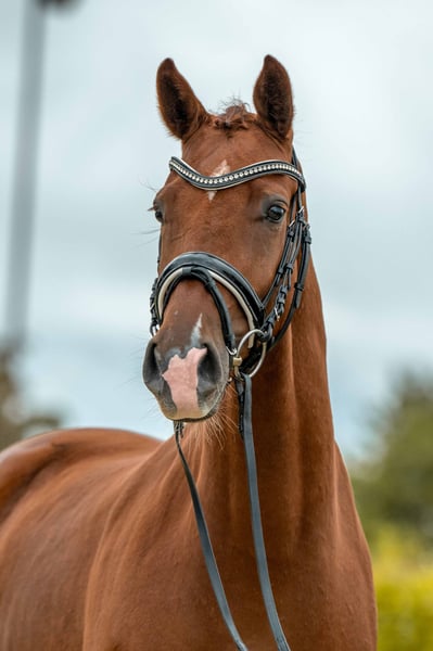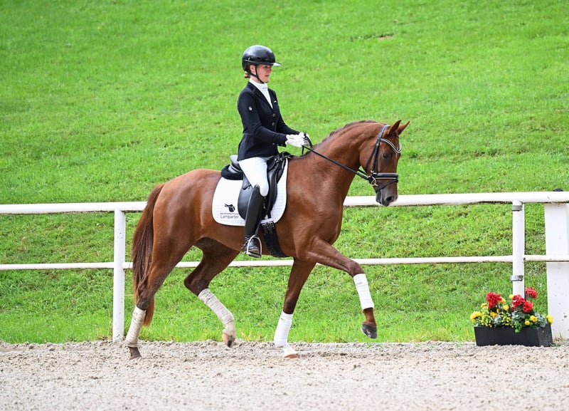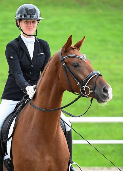 Hier geht's zur Kollektion und Online-Registrierung: https://auktion.pzvbw.de/auctions MwSt. 19 % Topmodel par excellence! Mit viel Ausdruck und großer Leichtfüßigkeit zeigt sich diese Remonte bei den ersten Schritten unter dem Sattel. Auch genetisch sind die hohen Rittigkeitswerte mit Vivaldi und Benicio bestens abgesichert. A top model par excellence! This young horse demonstrates her expressiveness and lightness of movement under saddle. Her excellent rideability is also genetically well-established with Vivaldi and Benicio.