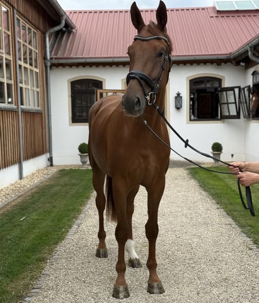 💎 Stute 💎 3 Jahre 💎 1,72 m 💎 Dressur | Nachwuchs für Zucht & Sport 💎 Preiskategorie 25.000€ - 30.000€ ⸻ Zum Verkauf steht eine außergewöhnlich interessante dreijährige Stute von Danciero x Bordeaux. Mit ihrem modernen sportlichen Typ, ihrer Größe von ca. 1,72 m, ihren überdurchschnittlichen Grundgangarten und ihrer natürlichen Rittigkeit ist sie sowohl für ambitionierte Amateure als auch für Profis eine echte Empfehlung. Genetisch ist sie hochinteressant: Danciero – aktuell einer der begehrtesten Hengste seiner Generation und Bordeaux, ein bewährter Vererber mit starker Rittigkeitsveranlagung. Damit ist die Stute züchterisch ebenso spannend wie sportlich. ⸻ Diese junge Stute überzeugt jeden Tag mit ihrem super lieben, extrem unkomplizierten und unerschrockenen Wesen. Sie ist: • sehr brav und zuverlässig im Umgang, • menschenbezogen, • unerschrocken, • einfach im Handling • und sozial absolut problemlos mit anderen Pferden. Unter dem Sattel zeigt sie sich leicht zu reiten, mit deutlich spürbarer Rittigkeit und einem tollen Arbeitseifer. Trotz ihres jungen Alters ist sie bereits sehr angenehm zu bedienen und macht es ihrem Reiter leicht. ⸻ Die Stute ist altersgemäß angeritten und kennt bereits: • Reiten in der Halle, • auf dem Platz, • Ausreiten ins Gelände. Sie wurde noch nicht auf Turnieren vorgestellt, hat aber alles, um im kommenden Jahr in eine erfolgreiche Saison zu starten. Sie ist aufgrund ihres Alters noch grün, aber zeigt sich hochmotiviert, klar im Kopf und stets bemüht, alles richtig zu machen. Ideal, um sie jetzt über den Winter in Ruhe weiter auszubilden. ⸻ Bei der Ankaufsuntersuchung wurde ein Chip gefunden, der operativ problemlos entfernt werden kann. Aufgrund dieses Befunds wird sie deutlich unter Wert abgegeben. Der Chip beeinträchtigt sie momentan nicht im Reiten und ist chirurgisch gut behandelbar. ⸻ Wir suchen ein liebevolles, langfristiges Zuhause für dieses Nachwuchstalent. Jungpferde-erfahrene Hände sind wünschenswert, aber kein Muss – durch ihr unkompliziertes Wesen ist sie auch für weniger erfahrene Reiter sehr gut händelbar. Eine sportliche Förderung würde uns freuen. ⸻ Diese Stute ist ein Top-Nachwuchspferd mit hervorragendem Pedigree, starken Grundgangarten, bester Rittigkeit und einem tollen Charakter. Zucht & Sport – beides absolut denkbar! Eine seltene Gelegenheit, ein so gut gezogenes und talentiertes Pferd zu einem deutlich reduzierten Preis zu erwerben.