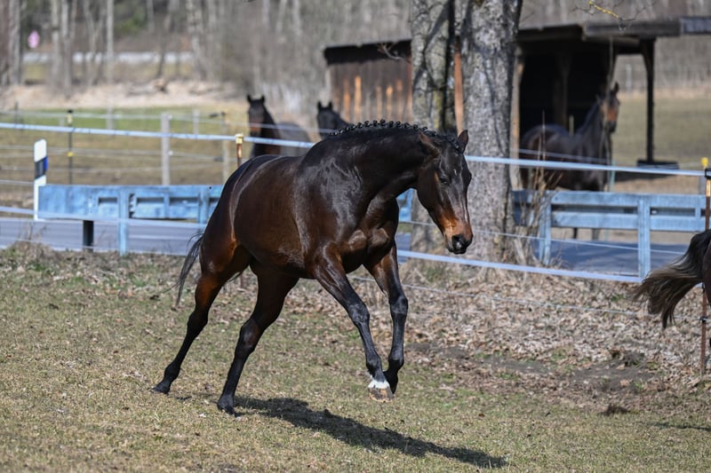 Juniper ist eine vielversprechende Halbblutstute, die bei uns familiär im Herdenverband mit 365 d Koppelgang aufgewachsen ist. Sie ist schmiedefromm, verkehrssicher und absolut unkompliziert im täglichen Umgang (führen, eindecken, abspritzen), duschgeimpft, regelmäßig entwurmt und vor 3 Wochen vollständig durchgeroengt ( o.b.B. ). Die Geschwister ihrer Mutter sind alle hocherfolgreich im Vielseitigkeitssport ( CIC 4 * , WM der Jungpferde ) Letzten Sommer unkompliziert spielerisch angeritten, über den Winter nochmal pausiert, jetzt ohen Probleme wieder den Reiter akzeptiert. Absolutes Vertrauen und Sensibilität zeichnen diesen Rohdiamanten aus. Deshalb nur in liebevolle, erfahrene, fördernde Hände abzugeben.