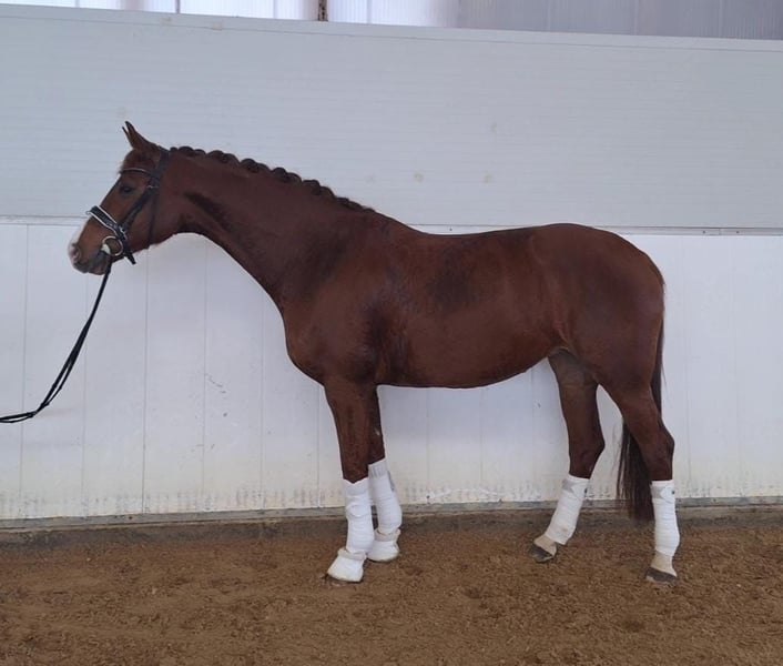 Diese Stute besitzt alles, was man sich wünscht. Mit drei sehr guten Grundgangarten ausgestattet bereitet sie uns jeden Tag einfach nur Freude. Sie ist immer ausgeglichen, absolut kopfklar und unerschrocken. Durch ihre super Rittigkeit macht die es jedem Reiter leicht, gut auszusehen. Sie bewegt sich taktvoll, ist angenehm am Bein und leicht zu sitzen. Sie ist bei uns auf dem Hof geboren, pferdegerecht in einer Herde aufgewachsen und wurde letzten Sommer angeritten. Sie ist momentan auf Dressurpferde A Niveau, direkt zum Losreiten. Ein ganz tolles Ausbildungspferd, das es seinem Reiter leicht macht und auch jeden Amateur glücklich macht. Für das Ausprobieren berechnen wir 40€, was bei Kauf selbstverständlich erstattet wird.