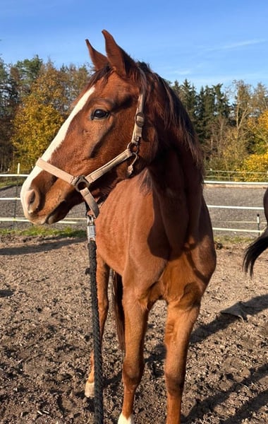 **Verkaufsanzeige: Deutsches Sportpferd - Stute** Zum Verkauf steht eine schöne Stute des Deutschen Sportpferdes, geboren im Jahr 2021, mit dem Namen Rose Royal. Diese junge Dame kommt aus einer sehr rittigen Linie mit hoch erfolgreichen Nachkommen und besitzt selber drei überdurchschnittliche Grundgangarten. Sie besticht durch ihre elegante Erscheinung als Fuchs mit einem geschätzten Endstockmaß von 165 cm. Sie eignet sich ideal für den Freizeitreiter oder dem Sportreiter, der für kleines Geld ein Pferd zum Selber Ausbilden sucht, da sie leider ein Handicap hat. (Aufsetzkopper) Ihre freundliche und ausgeglichene Art macht sie zu einem perfekten Partner für gemeinsame Stunden im Stall. Sie ist bereit, mit ihrem neuen Besitzer viele schöne Momente zu erleben und sich weiterzuentwickeln. Bei Interesse an dieser vielversprechenden Stute freuen wir uns auf Ihre Kontaktaufnahme für weitere Informationen und einen Besichtigungstermin.