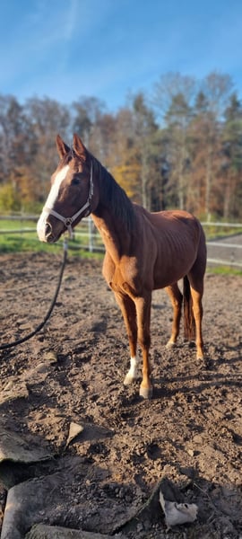 **Advertisement for sale: German sport horse - mare** For sale is a beautiful German Sport Horse mare, born in 2021. This young lady comes from a very rideable line with highly successful offspring. The young lady impresses with her elegant appearance as a chestnut with an estimated final height of 165 cm. She is ideal for the leisure rider who is looking for a horse to train himself for little money, as she unfortunately has a handicap. (saddle-mounted chopper) Her friendly and even-tempered nature makes her a perfect partner for spending time together in the stable. She is ready to experience many wonderful moments with her new owner and to develop further. If you are interested in this promising mare, we look forward to hearing from you for further information and a viewing appointment.