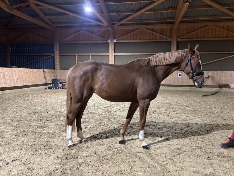 Gesucht wird ein neues Zuhause für eine wunderschöne Fuchsstute mit bester Springabstammung mit einem Befund!! Gwendolina hatte eine 5* Aufzucht und wurde schonend angeritten. Sie ist aufgrund ihres starken Charakters absolut kein Anfängerpferd und benötigt eine/n routinierte/n Reiter/in Sie hat einen Befund in der Hufrolle, weshalb sie auch deutlich unter Preis verkauft wird. In der bisherigen Ausbildung machte dieser Befund allerdings keinerlei Probleme. Ansonsten ist sie komplett durchgecheckt und ist auch in der Untersuchung dokumentiert. Bitte nur konkrete Anfragen. Für ein Vor und probereiten behalten wir uns eine Gebühr in Höhe von 40€ vor, welche bei erfolgreicher Vermittlung selbstverständlich verrechnet wird.
