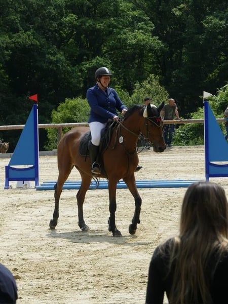 Zum Verkauf steht eine zierlich, sportlich gebaute Stute mit auffälligem Springvermögen. DMit einem erfahrenen Reiter zeigt sie sich im Pacour leichtrittig und leistungsbereit. Sie hat einen schönen zug zum Sprung, kennt Planken, Wassergraben...und ist nicht guckig. "Cali" bringt altersgemäß noch eigene Ideen mit und zeigt gelegentlich typisches Stutverhalten. Mit etwas Konsequenz ist dies gut händelbar und sie zeigt sich lernwillig. Sie ging dieses Jahr mit Amateurin an den Start und konnte sich direkt im E und A Springen ( Reitertag) vorne platzieren. Einem Start für die nächste Saison steht nichts im Weg. Das letzte Bild zeigt die Mutter ,,Laroma‘‘ sie hat L und M/B mehrmals gewonnen und war mehrfach platziert.