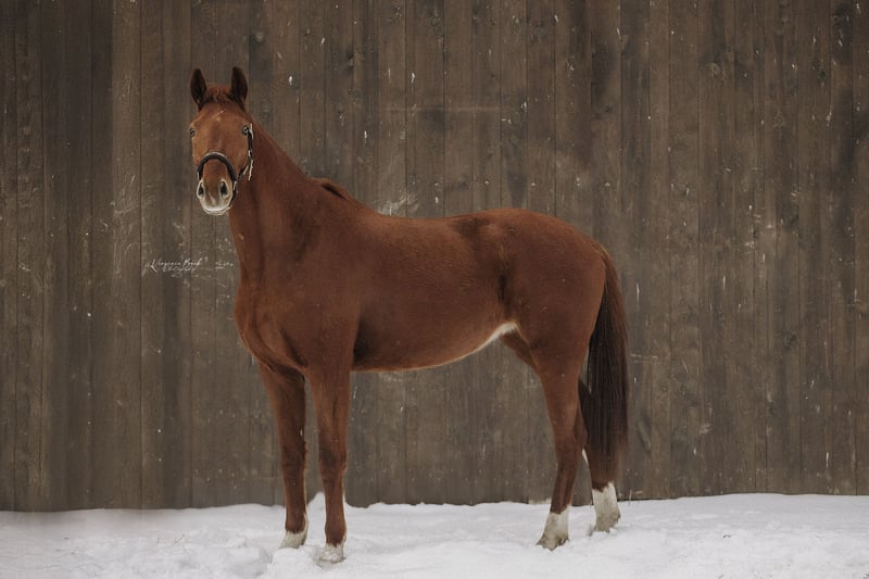 German Sport Horse Mare for Sale – Elegant Chestnut For sale is a beautiful German sport horse mare, born in 2020. With her striking chestnut coat and a height of 16.1 hh, she is a true eye-catcher both visually and in the sport. She is ideally suited for dressage and demonstrates plenty of talent along with a promising basic education. The mare is friendly, attentive, and well-ridden, making her an excellent partner for ambitious riders. Please feel free to contact me for more information or to arrange a personal impression!