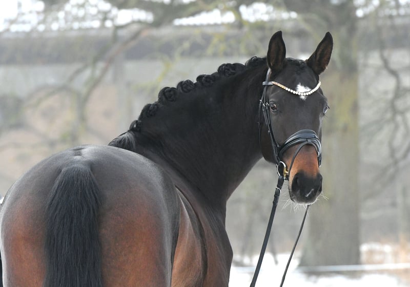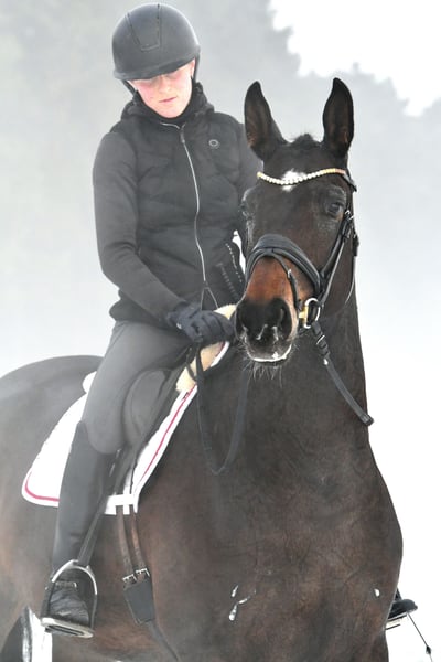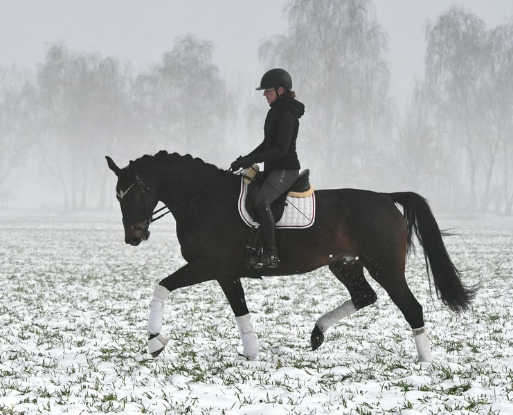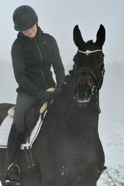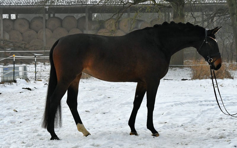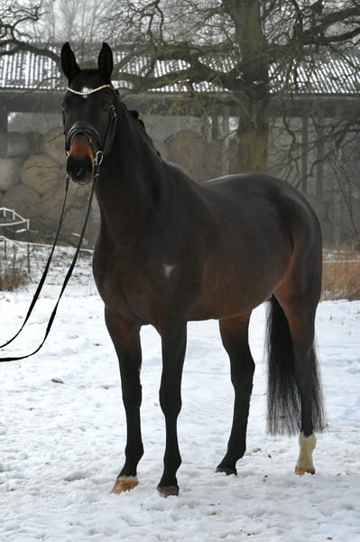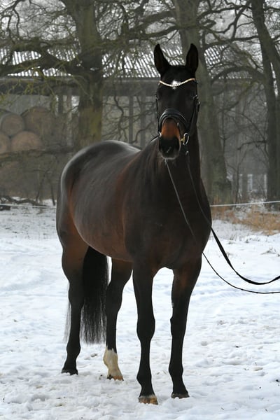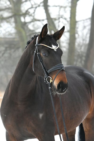 Are calmness, bravery, and coolness very important to you? Then meet Marie! This six-year-old mare, sired by the internationally successful DSP Marc Cain and equipped with a substantial frame, was carefully and lovingly raised by her breeders, where she was the "girl for everything." Is she the right partner to give an anxious rider confidence? A trustworthy lead horse for trail riding or a solo ride through the woods? Dressage on the arena or in the indoor school? Cavaletti exercises or a lunging session? That’s Marie! An absolutely lovely mare, both in handling and under saddle. She is currently competing at a good A level and would certainly make a good impression at competitions (excellent walk, very easy to sit). Not spooky or skittish—just get on and feel comfortable! A recent X-ray certificate from September 2025 is available. She is the darling of her breeder’s stable! Compatible with other horses, she has been kept in a mare group. If you don’t fall in love with her, it’s your own fault! Please call us by phone, as we are often out with the horses.