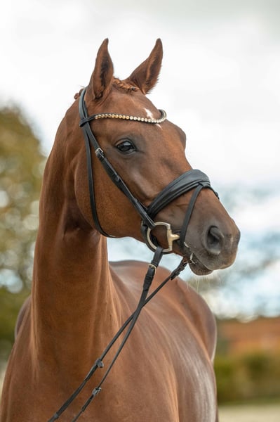 Here you can find the collection and online registration: https://auktion.pzvbw.de/auctions VAT 0% The ingenious genetics of the Grand Prix stallion and line founder Quando-Quando are doubly rewarded in this typey chestnut mare. Initially used as a broodmare, she is now being trained under saddle, has completed her performance test with a dressage score of 8.38, and is ready for her first competitions.