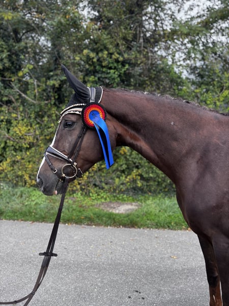 Verkaufe deutsches Sportpferd – elegante Dunkelfuchsstute Zum Verkauf steht eine wunderschöne deutsche Sportpferdestute, die durch ihre Vielseitigkeit und ihr edles Erscheinungsbild besticht. Geboren im Jahr 2019, vereint sie Kraft, Eleganz und Beweglichkeit in perfekter Harmonie. Merkmale: - Rasse: Deutsches Sportpferd - Geschlecht: Stute - Geburtsjahr: 2019 - Farbe: Dunkelfuchs - Stockmaß: ca. 172 cm - Einsatzgebiet: Dressur Dieses talentierte Pferd ist ideal für ambitionierte Reiter, die Wert auf Qualität und Leistungsbereitschaft legen. Sie überzeugt durch ihre angenehme Art, ihre Lernfähigkeit und ihre Bereitschaft, sich weiterzuentwickeln. Sie hatte 2 Fohlen die auf dem Gestüt auch besichtigt werden können. Bei Interesse oder für weitere Informationen stehe ich Ihnen gerne zur Verfügung. Besichtigung und Proberitte nach Vereinbarung möglich.