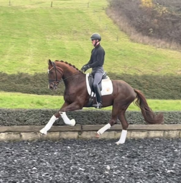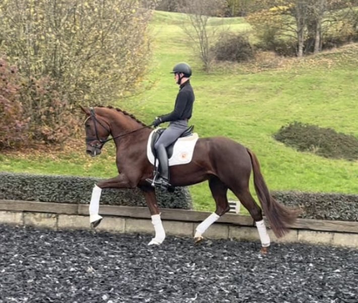 Highly talented daughter of Floriscount with exceptional quality and temperament Already successful and placed in dressage horse competitions, she also completed her mare performance test with a score of 8.58. Dear interested parties, For further questions or to arrange a trial ride, please feel free to contact us by phone or via WhatsApp 0172/6841671 www.dressurstall-bruenen.de