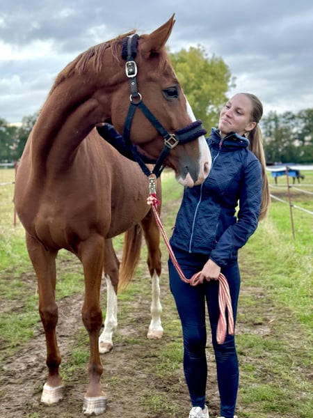 hiermit wünsche ich für unsere Stute ein tolles neues Zuhause. Sie wird fast täglich von einer professionellen Trainerin trainiert, Bodenarbeit, Longe und Springtraining gehört dazu. Mit anderen Pferde ist sie vertraglich und ist eher Rangniedrig. Sie liebt springen und gibt vor dem Sprung selbst GO, kein Ausweichen kein plötzliches Abbremsen. Sie ist Kopfklar, kein Beißen, kein Buckeln oder Steigen. Geboren Mai 2019 Stockmaß 168 cm. Sie ist kein absolutes Anfängerpferd, du solltest mindestens auf dem Niveau E reiten können. Sie besitzt ein LPO Eintrag. Sie besitzt durch Ihre Abstammung Springvermögen. Ausflüge ins Gelände liebt sie siehe Video und benimmt sich brav. Henrietta ist ein Barhufer und benötigt keine Eisen, somit kostensparend. Aktuell wird sie bis zu 5x wöchentlich von meiner Trainerin trainiert. Henrietta genießt regelmäßig Hufschmied. Sie ist Schmiede und Verladefromm, auf Hänger geht sie problemlos, regelmäßiges Training. Sie besitzt eine TOP Abstammung; Hickstead White X Periqueux/Wonderland. Videos gerne auf persönliche Anfrage, nach einem ersten Telefonat. Fürs Probereiten werden 40 € Gebühr genommen, um kostenlosen Reittourismus zu vermeiden. Diese werden jedoch beim Kauf verrechnet. Laut neuen EU Recht noch folgender Satz; Der Verkauf erfolgt unter Ausschluss jeglicher Sachmängelhaftung. „Ich schließe jegliche Sachmangelhaftung aus, die Angaben sind ohne Gewährleistung. Die Haftung auf Schadenersatz wegen Verletzungen von Gesundheit, Körper oder Leben und grobfahrlässiger und oder vorsätzlicher Verletzungen meiner Pflichten als Verkäufer bleibt uneingeschränkt bzw. unberührt“ Aufgrund des neuen EU-Rechts gelten folgende Bedingungen: Bei diesem Verkauf handelt es sich um einen Kaufvertrag von Privat an Privat nach § 13 BGB. Der Verkauf erfolgt unter Ausschluss jeglicher Gewährleistung, Garantie und Rücknahme. Gemäß § 447 BGB gilt, das mit Übergabe an den Versand oder den Käufer die Gefahr auf den Körper übergeht. Laut dem neuen EU-Recht muss dieser Zusatz unter jedem Online-Verkauf stehen, ansonsten haftet der Verkäufer ein ganzes Jahr für die verkaufte Ware.
