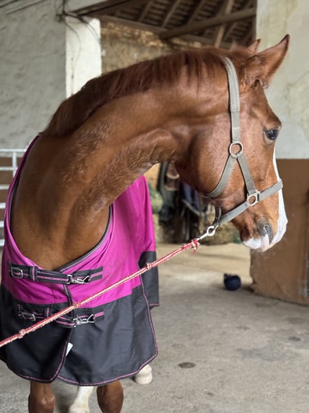 ¡Atención! El precio de 9.290 € solo es válido hasta el 31 de diciembre. A partir del 1 de enero de 2026, el precio de compra de Henrietta aumentará. Por la presente, deseo que nuestra yegua encuentre un hogar maravilloso. Ella es entrenada casi a diario por una entrenadora profesional, incluyendo trabajo en tierra, longe y entrenamiento en salto. Es social con otras caballos y tiene un rango bajo en la manada. Le encanta saltar y da la señal para saltar ella misma, sin esquivar ni frenar de repente. Henrietta no tiene malos hábitos, ni cabeceos, ni broncas, ni mordiscos. Nació en mayo de 2019. Mide aproximadamente 1,67 m. (16.1 hh). No es una yegua para principiantes absolutos; se recomienda tener al menos nivel E en la equitación. Cuenta con inscripción en la LPO. Su linaje le confiere buen talento para el salto. Le encantan las excursiones en terreno, como se puede ver en el vídeo, y se comporta de manera ejemplar. Henrietta es de raza pura de bar, no necesita herraduras, lo que reduce costes. Actualmente, es entrenada hasta 5 veces por semana por mi entrenadora. Recibe mantenimiento regular de herrador. Es tranquila en la herrería y en el transporte, entra sin problemas en el remolque, con entrenamiento regular. Tiene un linaje excepcional: Hickstead White x Periqueux/Wonderland. Vídeos disponibles tras una primera llamada telefónica y solicitud personal. Para la prueba de monta, se cobra una tarifa de 40 €, para evitar el turismo ecuestre gratuito. Este importe se descontará en la compra. Según la nueva legislación de la UE, se añade la siguiente cláusula: La venta se realiza eximiendo toda responsabilidad por defectos. "Excluyo toda responsabilidad por defectos, la información se proporciona sin garantía. La responsabilidad por daños en la salud, el cuerpo o la vida, así como por lesiones por negligencia grave o intencional en el cumplimiento de mis obligaciones como vendedor, permanece intacta." De acuerdo con la nueva legislación de la UE, se aplican las siguientes condiciones: Esta venta es un contrato entre particulares según § 13 BGB. La venta se realiza excluyendo toda garantía, garantía y devolución. Según § 447 BGB, con la entrega al envío o al comprador, la riesgo pasa al comprador. Conforme a la legislación europea vigente, este aviso debe estar incluido en toda venta online; de lo contrario, el vendedor será responsable durante un año por el producto vendido.