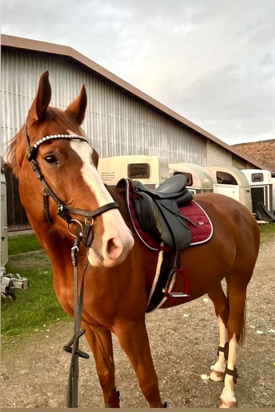 ATTENTION: The price of €9,290 is only valid until December 31st. Starting January 1, 2026, the purchase price for Henrietta will increase. I hereby wish our mare a wonderful new home. She is trained almost daily by a professional trainer, including groundwork, longeing, and jumping training. She is contractually kept with other horses and tends to be lower in the herd hierarchy. She loves jumping and initiates the jump herself with a clear GO, no evading or sudden braking. Henrietta has no vices, no bucking, no rearing, and no biting. Born in May 2019 Height: 16.1 hh She is not an absolute beginner’s horse; you should be able to ride at least at level E. She has an LPO registration. Her breeding indicates good jumping ability. She enjoys trail rides, as shown in the video, and behaves well during outings. Henrietta is a native-bred (Barhuf) mare and does not require shoes, which saves costs. Currently, she is trained up to five times a week by my trainer. She is regularly attended to by the blacksmith. She is forge- and trailer-trained, loads easily, with consistent training. A fantastic leisure horse, perfect for riding out. She has a special pedigree: Hickstead White x Periqueux/Wonderland. Videos available upon request after an initial phone call. Further details will be discussed personally. Price negotiations are only possible on-site. According to the new EU law, the following clause applies: The sale is made under exclusion of any warranty for material defects. “I exclude any liability for material defects; all information is provided without guarantee. Liability for damages resulting from injury to health, body, or life, as well as grossly negligent or intentional breaches of my duties as the seller, remains unaffected.” In accordance with the new EU regulations, the following conditions apply: This sale is a private sale from private to private under § 13 BGB. The sale is made without warranty, guarantee, or return. According to § 447 BGB, risk passes to the buyer or the shipping carrier upon handover. This clause must be included under every online sale according to EU law; otherwise, the seller is liable for the sold goods for one year.