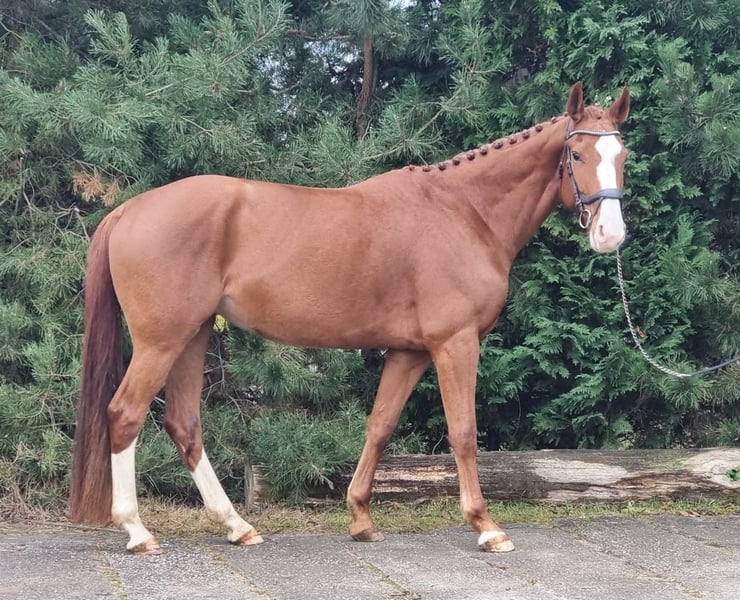 Uwaga! Cena 9 290 € obowiązuje tylko do 31.12.2023. Od 1.01.2024 cena zakupu Henrietty wzrośnie. Niniejszym życzę naszej klaczy świetnego nowego domu. Jest prawie codziennie trenowana przez profesjonalnego trenera, obejmuje to pracę na ziemi, lonżę oraz trening skokowy. W relacji z innymi końmi jest podległa i zazwyczaj zajmuje niższą pozycję w hierarchii. Kocha skoki i sama daje sygnał do skoku, nie odwraca się ani nie nagle nie zwalnia przed przeszkodą. Henrietta nie ma żadnych złych nawyków, nie puka, nie kuca, nie gryzie. Urodzona w maju 2019 roku. Wysokość w kłębie 167 cm. Nie jest to koń dla początkujących, powinieneś umieć jeździć przynajmniej na poziomie E. Posiada wpis do rejestru LPO. Dzięki swojemu pochodzeniu ma duży potencjał skokowy. Lubi wycieczki w teren, co można zobaczyć na filmie, zachowuje się przy tym grzecznie. Henrietta jest koniem rasy barhuf i nie wymaga obuwia, co jest korzystne pod względem kosztów. Obecnie jest trenowana przez moją trenerkę do 5 razy w tygodniu. Regularnie korzysta z usług kowala. Jest spokojna podczas czyszczenia kopyt i załadunku, bez problemu wchodzi na przyczepę, regularne treningi. To wspaniały koń rekreacyjny, idealny do jazdy w terenie. Ma wyjątkowe pochodzenie: Hickstead White X Periqueux/Wonderland. Filmy chętnie udostępnię po wstępnym telefonicznym kontakcie. Wszystko w szczegółach do ustalenia osobiście, negocjacje ceny wyłącznie na miejscu. Zgodnie z nowym prawem UE dodaję następujący zapis: Sprzedaż odbywa się z wyłączeniem wszelkiej odpowiedzialności za wady. „Wyłączam wszelką odpowiedzialność za wady fizyczne, informacje są podane bez gwarancji. Odpowiedzialność za szkody wynikłe z naruszenia zdrowia, ciała lub życia oraz za rażące niedbalstwo lub umyślne naruszenia moich obowiązków jako sprzedającego pozostaje bez ograniczeń.” Zgodnie z nowym prawem UE, poniższy zapis musi znajdować się pod każdym ogłoszeniem online, w przeciwnym razie sprzedawca będzie odpowiadał przez cały rok za sprzedany towar.