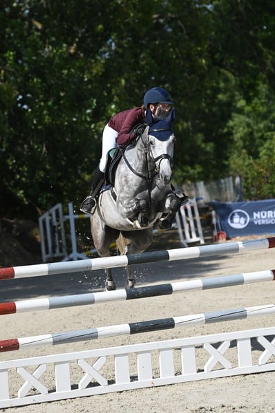 For sale is an elegant and talented German sport mare, always ready to win. With her striking grey coat and a height of 16.1 hh, she is a true eye-catcher both visually and athletically. She is ideally suited for show jumping and possesses the necessary talent, jumping technique, and willingness to learn to excel in the competition scene. An absolutely uncomplicated course horse. At age 7, she has already won multiple L-level show jumping classes. The mare is healthy, well-trained, and shows great potential for ambitious riders seeking a reliable partner. X-rays are available with no findings! Directly from the breeder and trainer, from the first hand!!! She is only being sold because the next generation of young horses is being brought on. Additional videos can be found under "Quentina 21" on Rimondo or clipmyhorse.tv, or upon request. If you are interested or have further questions, I am happy to assist. Viewings and test rides are possible by arrangement (for a fee).