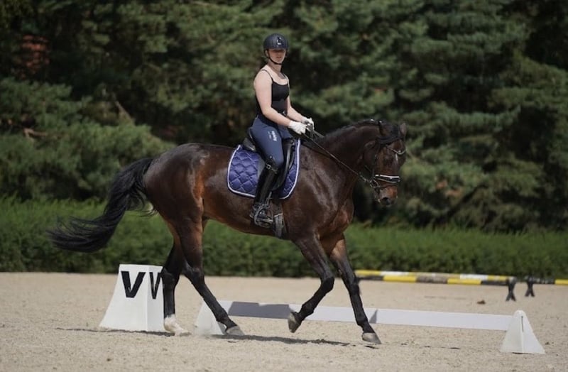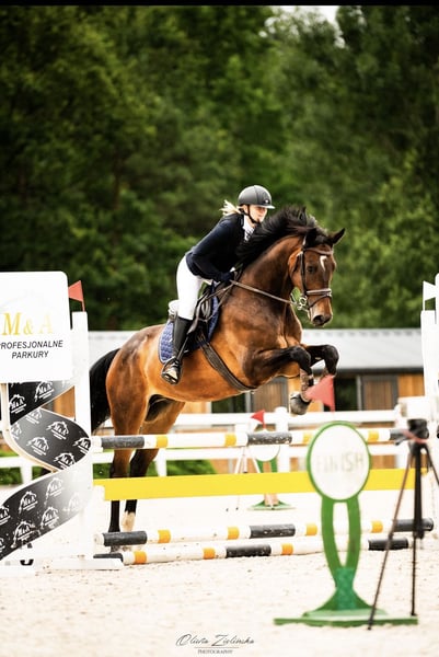 Na sprzedaż 9 letni walach po Accuse/Accord II Koń idealny dla ambitnego dziecka/amatora do wprowadzenia w skoki badź ujeżdżenie. W ujeżdżeniu startował do N klasy włącznie, w skokach zaczął startować w tym roku do LL90. W domu chodzi parkury 100/110 z możliwościami na więcej niestety brak jeźdźca skokowego dla konia stąd decyzja o sprzedaży. Koń jest niezwykle cierpliwy i pomocny przy skokach, więc idealnie nada sie dla osoby słabiej jeżdżącej. Jest przyzwyczajony do wszelkich zabiegów pielęgnacyjnych , bez problemu wchodzi do koniowozu/przyczepy. Chodzi także w tereny sam bądź z innymi końmi. Posiada badania RTG z 2023roku. Cena do negocjacji przy szybkiej decyzji. O kontakt proszę poprzez wiadomości na numer 667 033 433