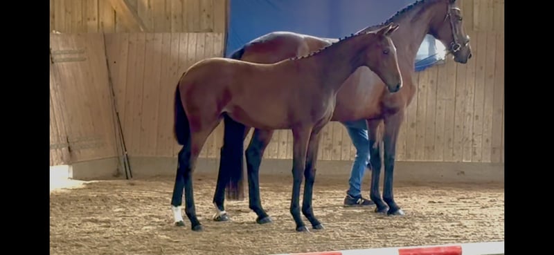 Schickes, gut erzogenes und bewegungsstarkes Stutfohlen mit interessantem Pedigree! Aus dem Stamm des Olympiapferdes Escapado (Carl Hester). *18.03.2025 Van Vermeer x Vilancio x Royal Hit Video vorhanden und kann gerne versendet werden. Kontakt: 01721831922
