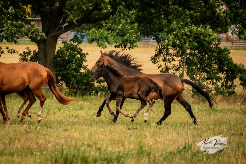 🌸 Verkaufsanzeige: Stutfohlen „Dakaria“ 🌸 📅 Geboren: 03.02.2025 🔹 Abstammung: De Niro × El Salvador × Dekurio 🔹 Geschlecht: Stute Unsere kleine Dakaria sucht ab sofort ein liebevolles neues Zuhause. Sie überzeugt nicht nur mit ihrer hervorragenden Abstammung, sondern auch mit ihrem bezaubernden Charakter: ✨ beherrscht das Fohlen-ABC ✨ schmiedefromm ✨ total lieb, menschenbezogen und verschmust ✨ neugierig, aufgeweckt und stets bemüht, alles richtig zu machen Dakaria wächst im Herdenverband auf, ist bestens sozialisiert und entwickelt sich zu einer eleganten, typvollen Jungstute mit viel Ausstrahlung und Herz. 📍 Standort: Reitstall Hohenbocker Bei Interesse freuen wir uns über eine Nachricht und ein Kennenlernen. Dakaria ist auf dem Titelbild Foto Drei die Mutti Dunja . Vater ist Dekurio Abstammung Papiere auf dem Bild von der Mutti . Aktuell befindet sich der Pass von Dakaria noch in Moritzburg zur Eintragung.Eigentumsurkunde vorhanden .