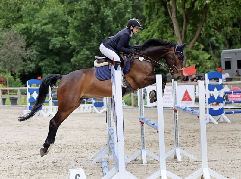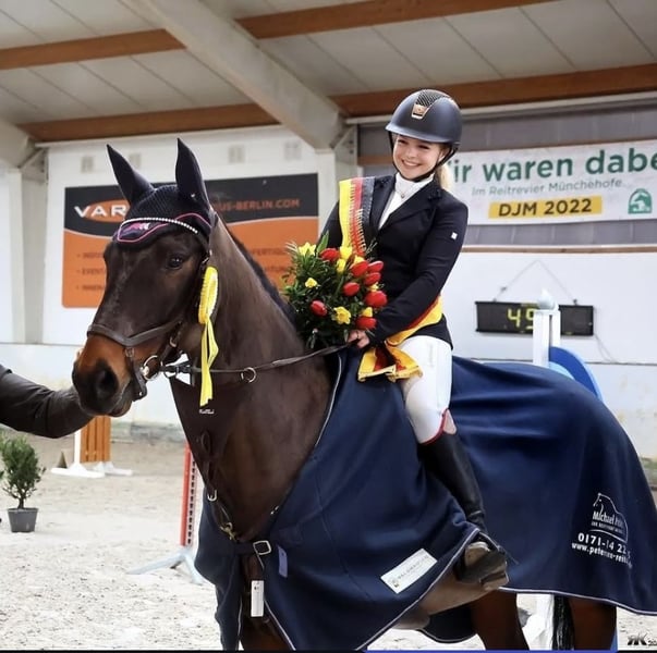 Na sprzedaż 10-letni wałach Stakkato Gold, nazywany z miłością „Goldi”. Ma 1,64 m wzrostu i jest w moim posiadaniu od piątego roku życia. Dał mi moje pierwsze lokaty w klasach L i M, dlatego jest idealnie nadający się dla młodej dziewczyny, którą dzięki swojej pewności w skokach wprowadzi do sportu jeździeckiego oraz do klasy L. Goldi bardzo rzadko popełnia błędy i jest w stanie pokonać niemal każdą odległość. Ma ponad 20 zwycięstw zarówno w skokach stylowych, jak i w skokach przez przeszkody z błędami/czasem w klasie A i L, a także już ma lokaty w klasie M. Goldi jest aktualnie wice-mistrzem okręgu w mojej pierwszej damskiej trasie i dwukrotnie zdobył mistrzostwo okręgu juniorów i młodych jeźdźców, a także mistrzostwo halowe w trasie L. Oczywiście jest spokojny w transporcie i u kowala. Byłam z nim również sama na zawodach. Ogólnie jest to bardzo spokojny koń, który jest zawsze do opanowania zarówno z ziemi, jak i podczas jazdy. Przez pięć lat był zawsze zdrowy i bez kontuzji. Goldi znajduje się w 12623 Berlin i chętnie można go odwiedzić i wypróbować.