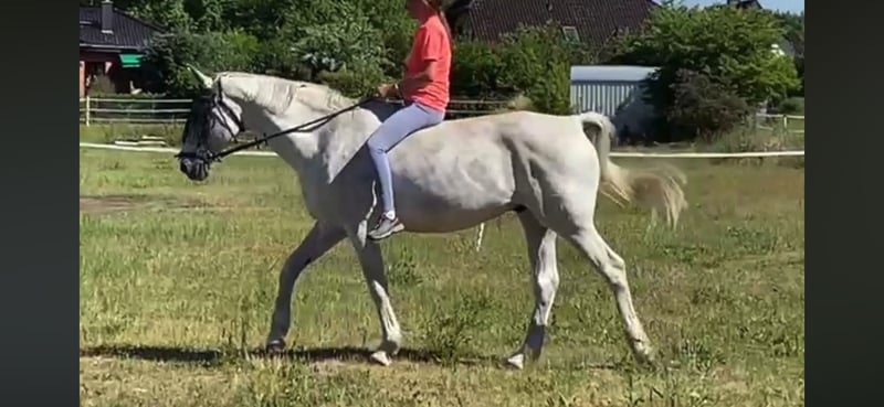 Schön gerittener Wallach mit tollem Exterieur. Kennt Bodenarbeit und vor allem lange Geländeritte, sicher im Strassenverkehr, auch kleine Sprünge sind für ihn kein Problem