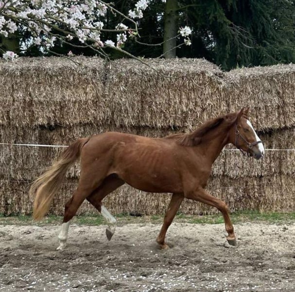 Zum Verkauf steht ein gut entwickelter 2-jähriger Wallach v. Meganus PS (Messenger x Carthago) aus einer sporterfolgreichen Mutter v. Concorde (Voltaire). Er ist im März 2023 geboren und wurde im Mai 2024 gelegt. In schicker fuchsfarbener Jacke präsentiert er sich locker und leichtfüßig in der Bewegung. Er ist umgänglich, halfterführig, schmiedefromm und weiß durch seine charmante Art zu gefallen. Leistungsbetonter, sportiver Typ, der aufgrund seiner Abstammung beste Grundvoraussetzungen für den gehobenen Springsport bietet. Vater "Meganus PS" besticht mit seinem grenzenlosen Springtalent und einer sensationellen wie seltenen Blutführung. Meganus PS sammelte in der letzten Saison unter Eiken Sato/JPN alleine neun Siege und zahlreiche weitere Platzierungen in der nationalen und internationalen Youngster-Tour, bei der Springpferde-WM, dem Bundeschampionat der Siebenjährigen und dem Dobrock-Championat. Zuvor gelangen ihm unter Patrick Stühlmeyer Seriensiege, darunter die Titelverteidigung beim prestigeträchtigen Dobrock-Championat (9,2) und der Gewinn des Qualifikationsspringens beim Bundeschampionat (8,8). Weitere Infos einsehbar unter: https://schockemoehle.com/Meganus-PS/DE418180038416 Mutter "Warma" war selbst in Springparcours bis 1,35 m erfolgreich unterwegs und wurde aufgund ihrer sportlichen Leistung als KWPN-Sterne-Stute sowie mit der DSP-Prämie "Sport" ausgezeichnet. Der Wallach entspringt aus einem erfolgreichen und leistungsstarken Mutterstamm - einzusehen unter: https://www.kwpn.org/kwpn_database?horse=p-337700 -> Menu -> Performance damline Bei ernsthaftem Interesse können gerne aktuelle Fotos und Videoaufnahmen übermittelt oder direkt ein Termin zur Besichtigung vereinbart werden.