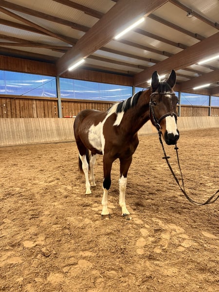 Zum Verkauf steht ein 3-jähriger Wallach aus der Anpaarung Syltwind x Quidamo / Argentinus mit einem aktuellen Stockmaß von ca. 1,63 m. Er überzeugt durch ein modernes Exterieur und eine angenehme Art im Umgang. Im Freispringen zeigt er gute Übersicht, ist aufmerksam, vorsichtig und verfügt über eine ordentliche Technik. Seine Abstammung bietet eine solide Grundlage für eine weitere sportliche Ausbildung. Der Wallach ist geimpft und frisch entwurmt, schmiede- und verladefromm und zeigt sich im Alltag brav, unkompliziert und menschenbezogen. Ein interessantes Nachwuchspferd für den Springsport oder die vielseitige Ausbildung, geeignet für Reiter, die ein junges Pferd in Ruhe weiter fördern möchten. 📞 Kontakt & Besichtigung Anfragen bitte ausschließlich telefonisch: 📞 0341 / 98995223 🕘 Mo.–Fr. 09:00–21:00 Uhr 🕘 Sa. 09:00–20:00 Uhr 🕘 So. 09:00–17:00 Uhr ⸻ 🐎 Probereiten & Vorführung 💶 Probereiten: 30 € pro Pferd (max. 2 Reiter) → wird bei Kauf angerechnet 💶 Feiertage: 50 € Absagen bitte mindestens 24 Std. vorher, andernfalls wird der Termin berechnet. 💶 Vorführen durch unsere Bereiter (ohne Probereiten / Bodenarbeit etc.): 25 € pro Pferd ⸻ Ankaufsuntersuchungen sind in jedem Umfang möglich – gerne durch Ihren oder unseren Tierarzt. Transport ins neue Zuhause kann auf Wunsch organisiert werden. 💶 PK 8 📍 Standort: Raum Leipzig 🌐 www.deutsche-pferde-boerse.de Hinweis: Stockmaßangaben sind Schätzungen des Verkäufers und stellen keine zugesicherten Eigenschaften dar.