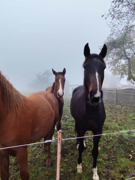 Unfortunately, we cannot keep all of them either. We are a small hobby breeder and only keep our mare foals. Clemens was born in 2022 and has grown up robustly within a herd. His sire is Castello Branco, who has achieved great success up to S*** level. His dam, Delaynie, was also born with us and has competed up to S* level in show jumping with our daughter. Delaynie is a half-bred mare by Domenico xx out of a Ferman-Lonely Boy-Landgraf-Indentat mare line. Clemens was our first foal and is currently approximately 160 cm tall, so not the tallest. As a gelding, he will still grow a few more centimeters, but there are also smaller riders out there. He is looking for HIS person—someone who has the time to work with him and develop him further. He is still quite raw, has been lunged, and is familiar with free jumping. For more information, please contact 01772423528. Please only get in touch if you are genuinely interested; anything else is a waste of time.