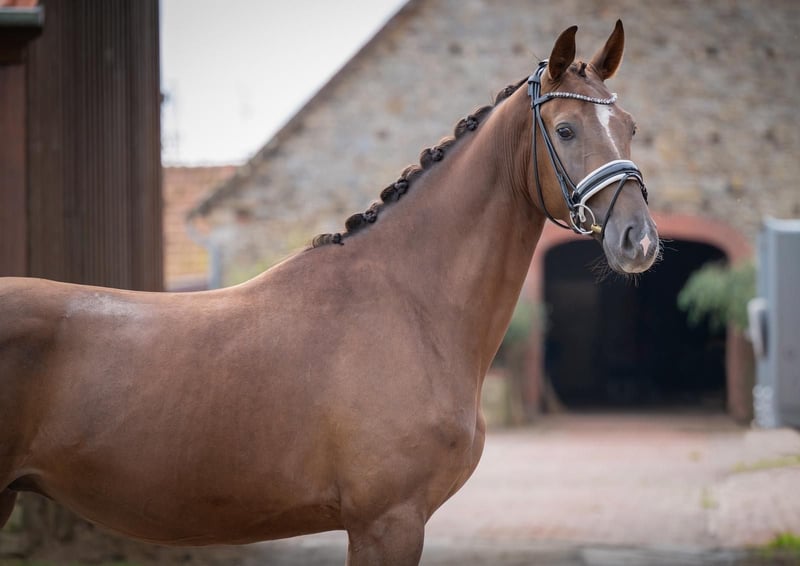 Talisman ist ein 4-jähriger, liebevoll aufgezogener Dunkelfuchs aus eigener Zucht, der durch seine besondere Ruhe, Klarheit und Menschenbezogenheit besticht. Er zeigt sich bereits jetzt als absolut verlässlicher Partner im Umgang und unter dem Sattel – ein Pferd, das Vertrauen schenkt und Sicherheit vermittelt. ✨ Sein Charakter: • ausgesprochen brav und umgänglich • menschenbezogen und freundlich • klar im Kopf, neugierig und lernwillig ✨ Ausbildung: • sicher im Umgang (führen, putzen, anbinden) • geht alleine problemlos auf den Hänger und wieder herunter • kennt Doppellonge • läuft über Trabstangen und macht kleine Sprünge • geht bereits alleine eine kleine Runde ins Gelände • Reiterwechsel kennt er ebenfalls Talisman ist für sein Alter außergewöhnlich abgeklärt und bringt eine tolle Basis mit. Er eignet sich ideal für Reiter, die ein junges Pferd weiter fördern möchten – auch für ambitionierte Einsteiger mit Unterstützung. ✨ Abstammung: Total Diamond x Contendro – leistungsgeprägt und interessant für vielseitige Förderung ✨ Besonderheit: Ein Pferd mit viel Herz und Charakter, das seinem Menschen gefallen möchte und dabei stets ehrlich bleibt. Wir wünschen uns für Talisman einen wertschätzenden Platz, an dem er weiter wachsen darf. Ein Kennenlernen mit ausreichend Zeit ist selbstverständlich möglich.